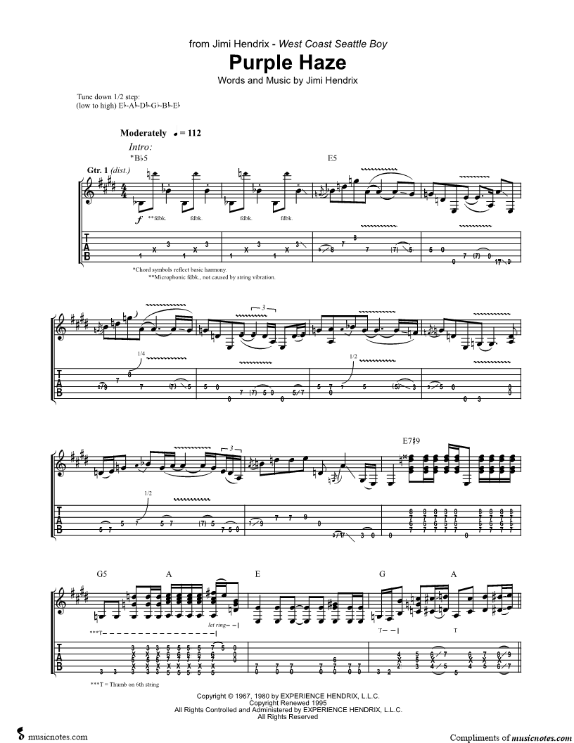 Voice, range: F#4-B5 Guitar | |