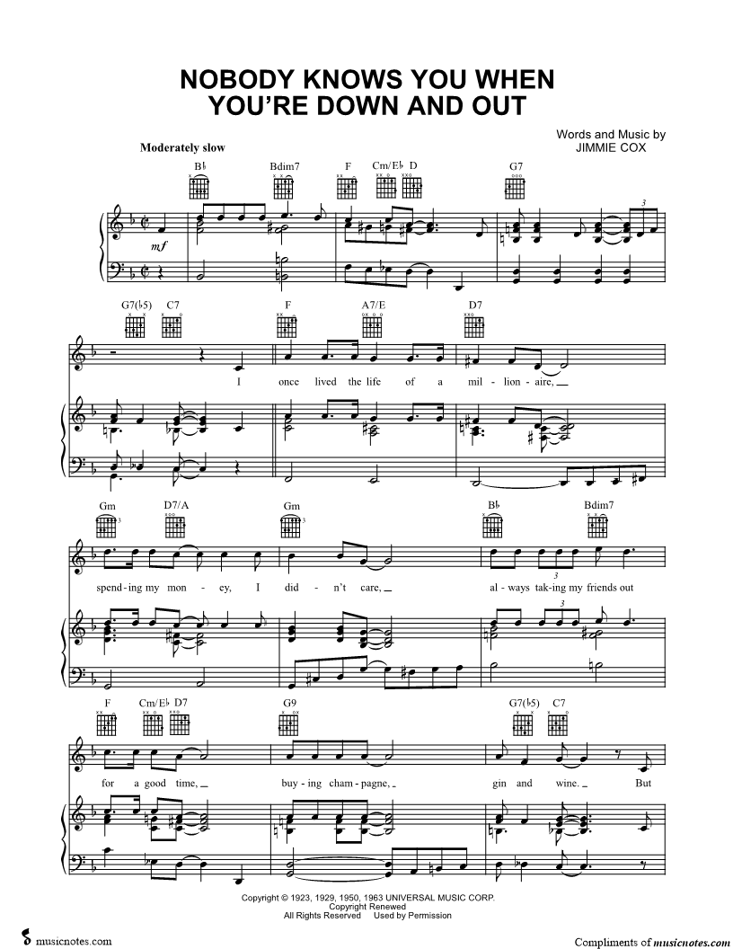 Nobody Knows You When You're Down and Out |
