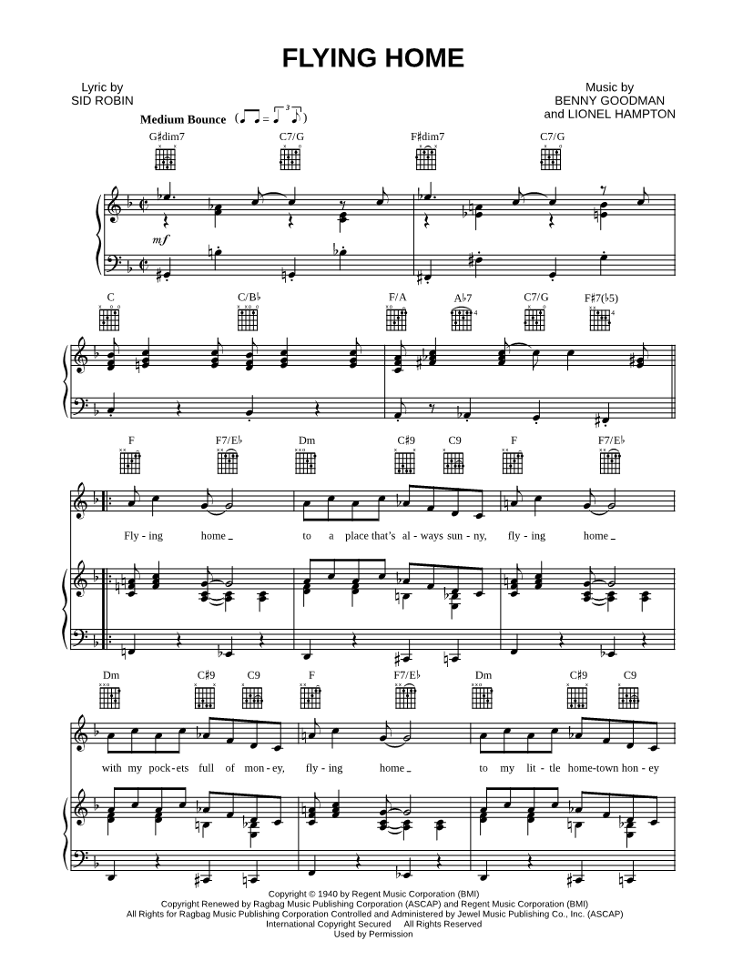 Flying home to a place that's always sunny, flying home with my pockets full of money, flying home to my little hometown honey waitin' for me there. |