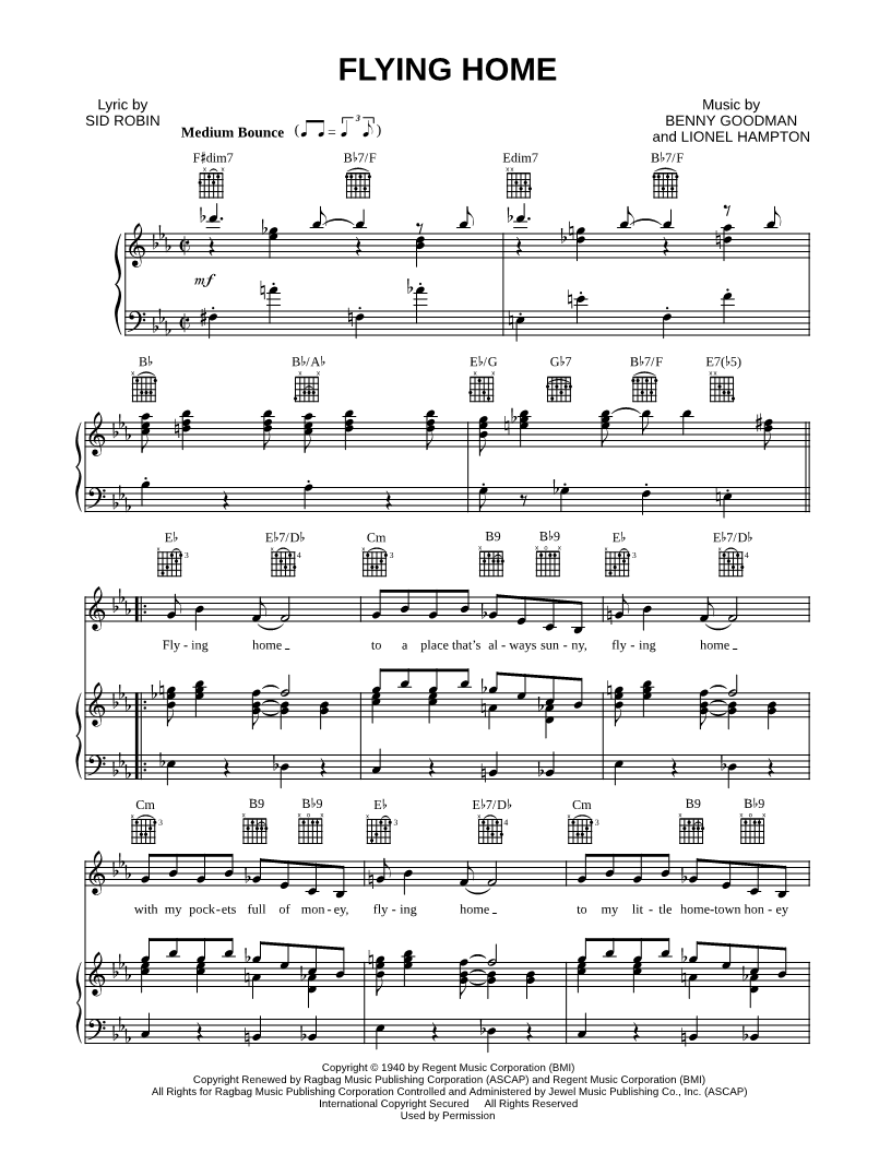 Flying home to a place that's always sunny, flying home with my pockets full of money, flying home to my little hometown honey waitin' for me there. |