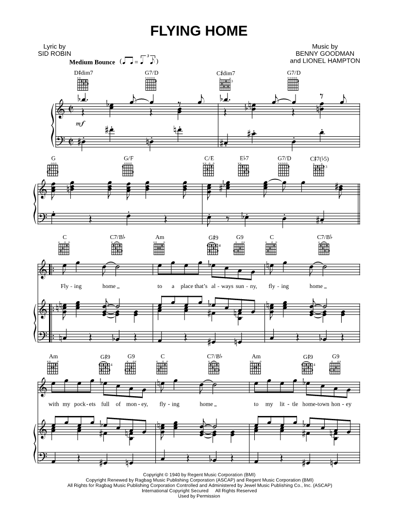 Flying home to a place that's always sunny, flying home with my pockets full of money, flying home to my little hometown honey waitin' for me there. |