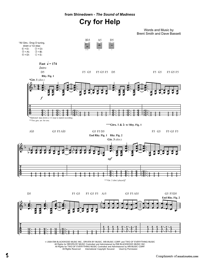 Voice, range: C4-C6 Backup Vocals Guitar 1 Guitar 2 Guitar 3 Guitar 4 | |