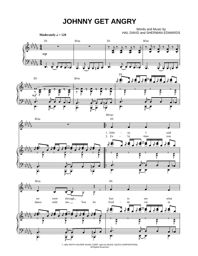 Johnny I said we were through Just to see what you would do You stoodthere, and hung your head Made me wish that I were dead Oh, Johnny get angry Johnny get mad Give me the biggest lecture I ever had I want a brave man, |