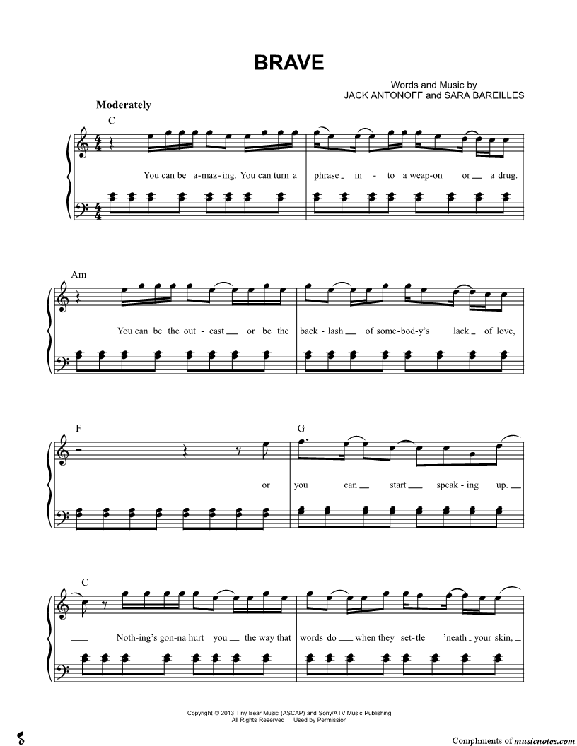 "My daughter loves Sara bareilles and enjoyed this simple piece to play on piano"