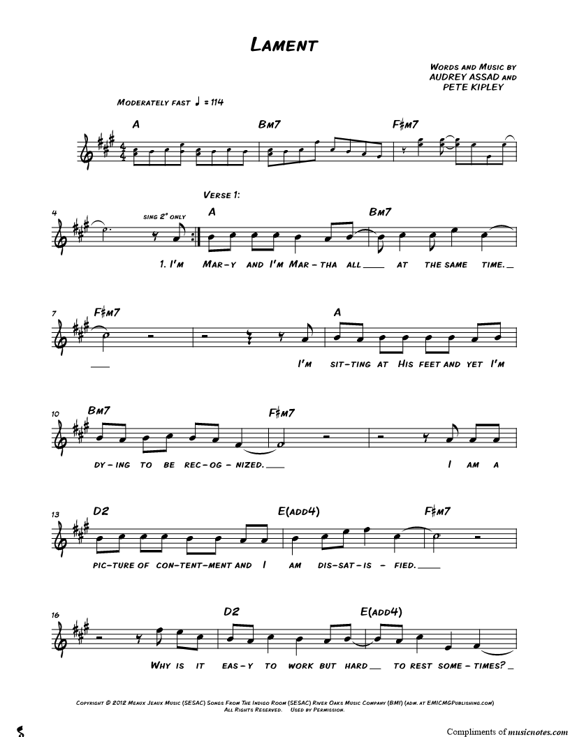 Leadsheets typically only contain the lyrics, chord symbols and melody line of a song and are rarely more than one page in length. Musicians will often use these skeletons to improvise their own arrangements. Leadsheets often do not contain complete lyrics to the song.
