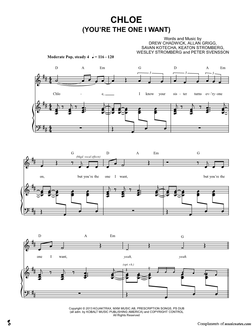 Chloe, I know your sister turns ev'ryone on, but you're the one I want |