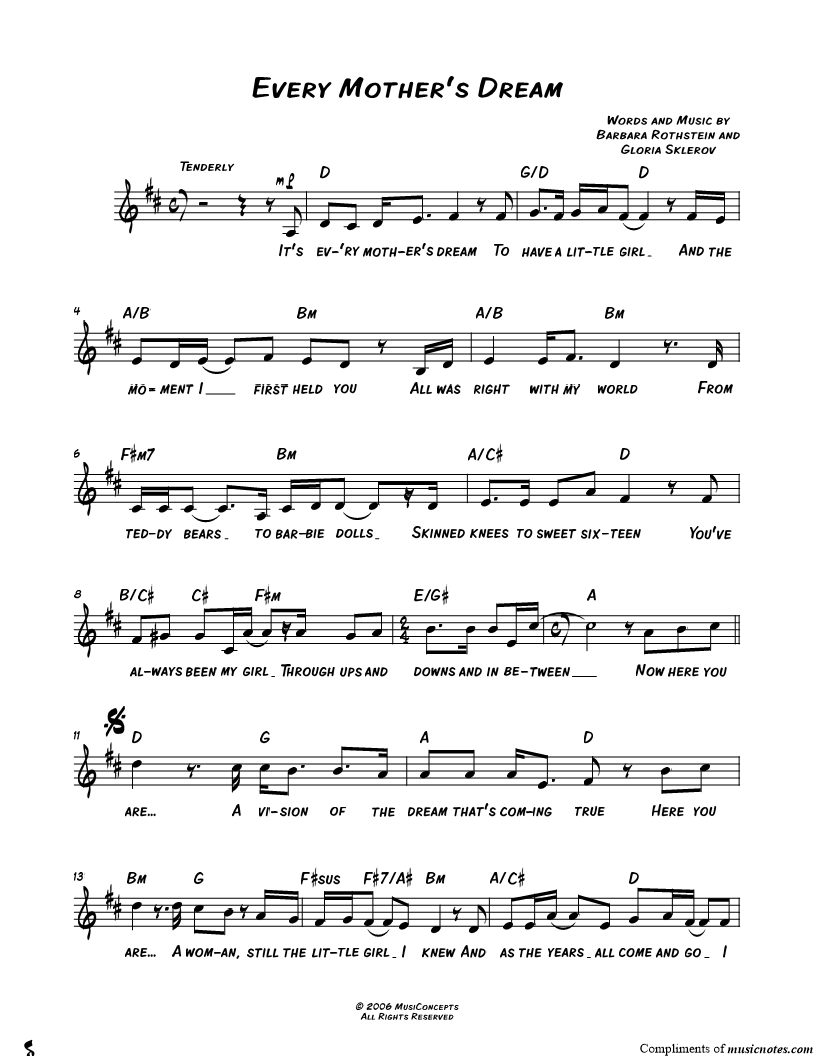 It's ev'ry mother's dream To have a little girl |