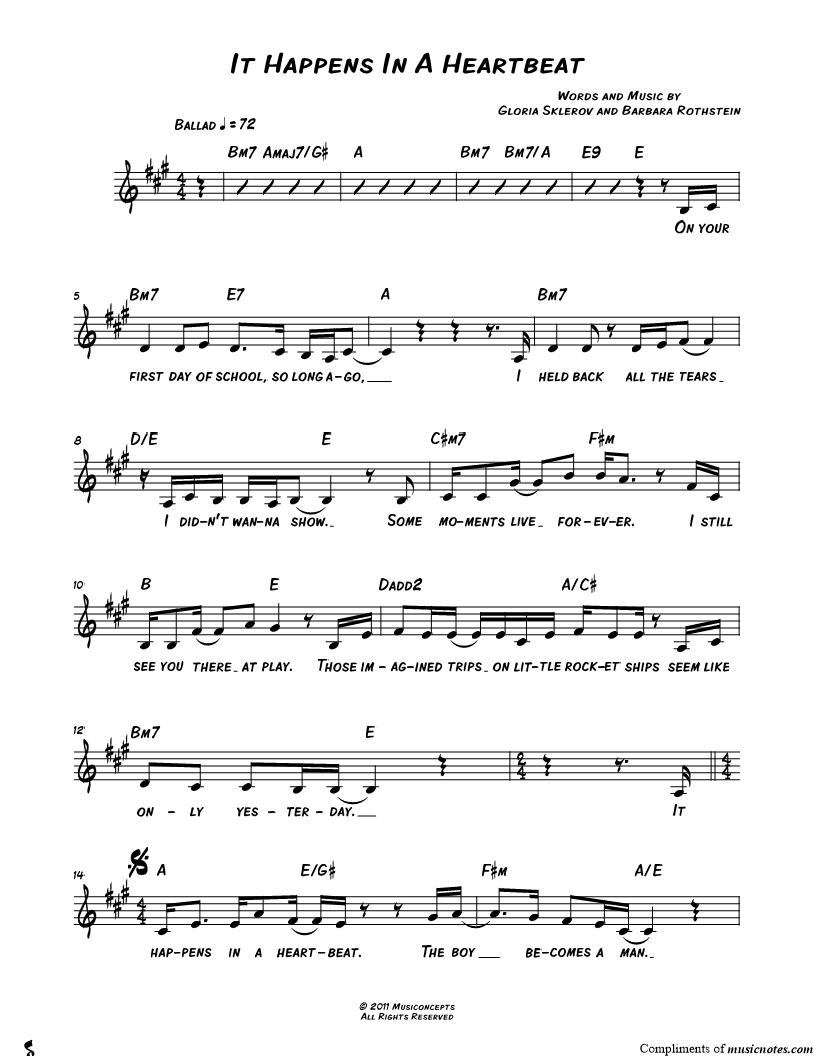Leadsheets typically only contain the lyrics, chord symbols and melody line of a song and are rarely more than one page in length. Musicians will often use these skeletons to improvise their own arrangements. Leadsheets often do not contain complete lyrics to the song.