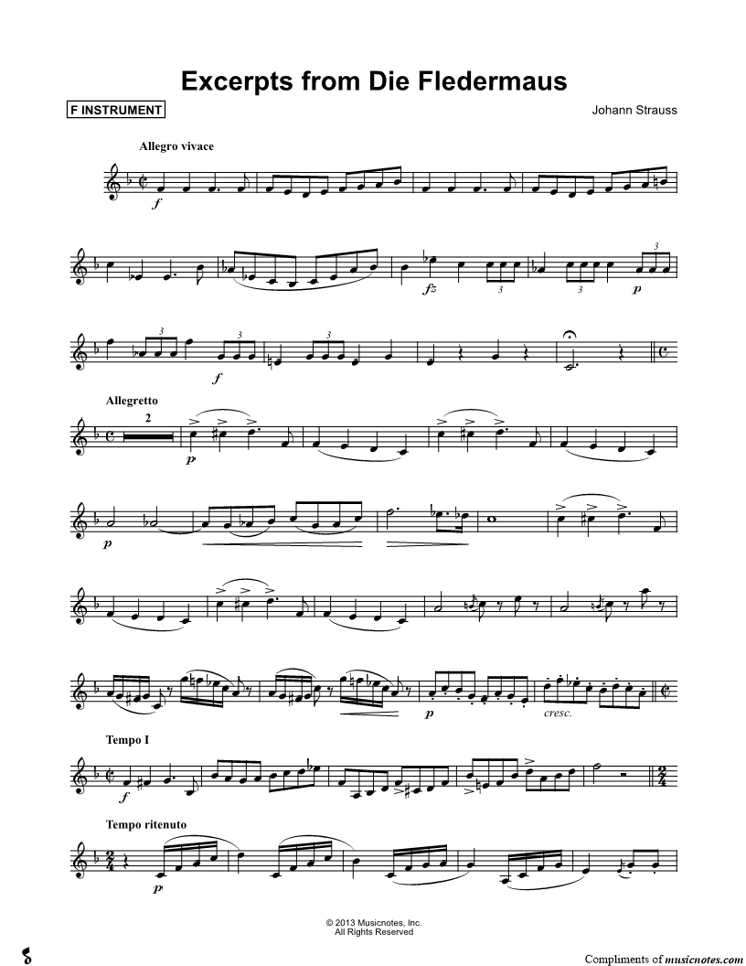 Excerpts from Die Fledermaus - F Instrument |