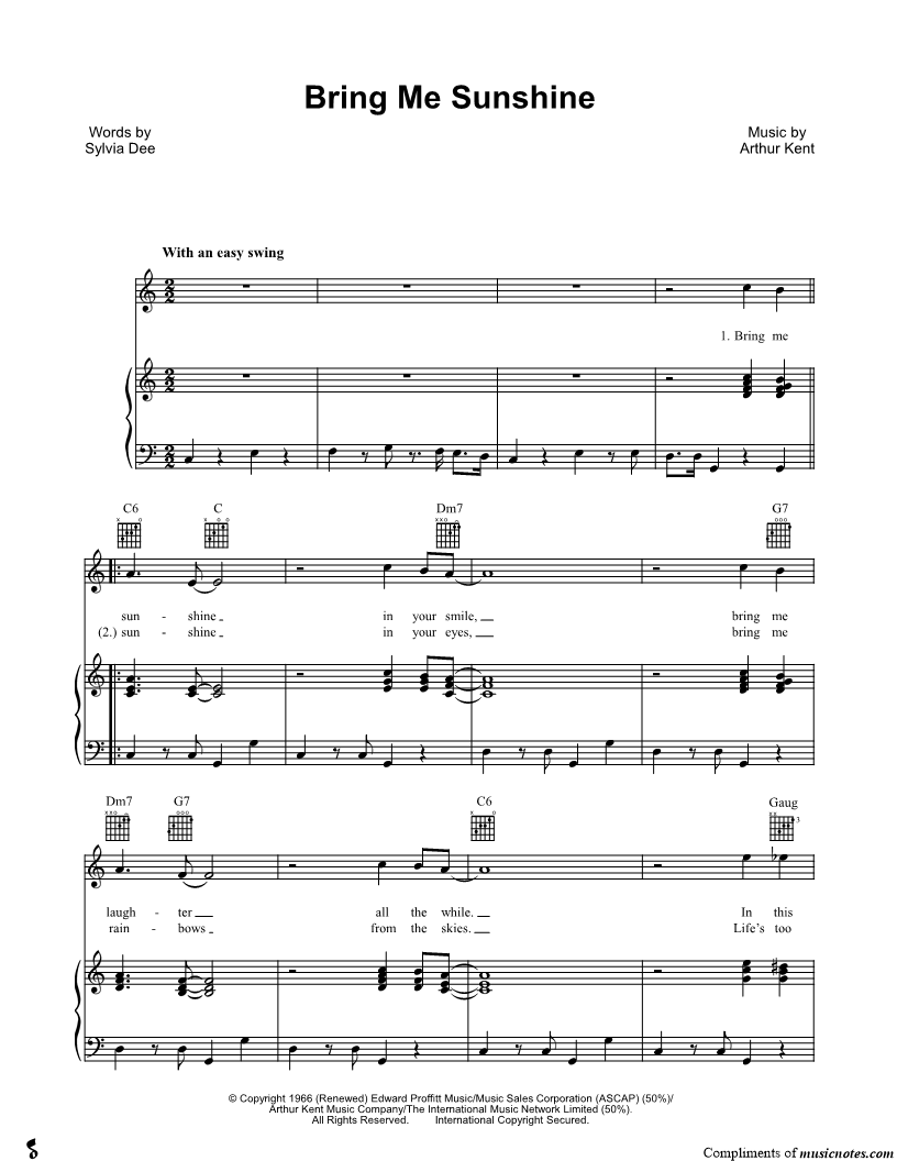 Bring me sunshine in your smile, bring me laughter all the while. |