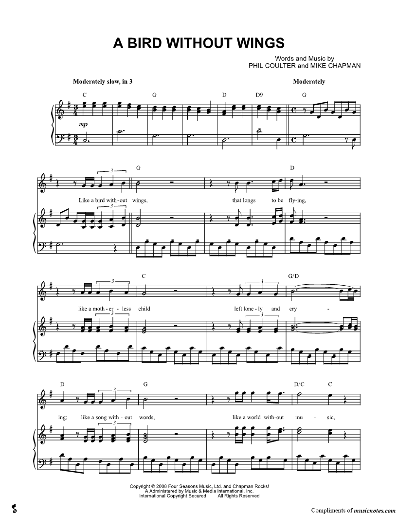 Like a bird without wings, that longs to be flying, like a motherless child left lonely and crying; like a song without words, like a world without music, |