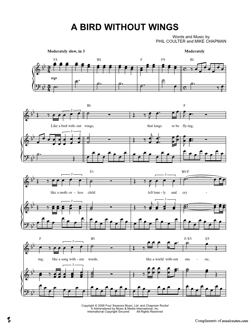 Like a bird without wings, that longs to be flying, like a motherless child left lonely and crying; like a song without words, like a world without music, |
