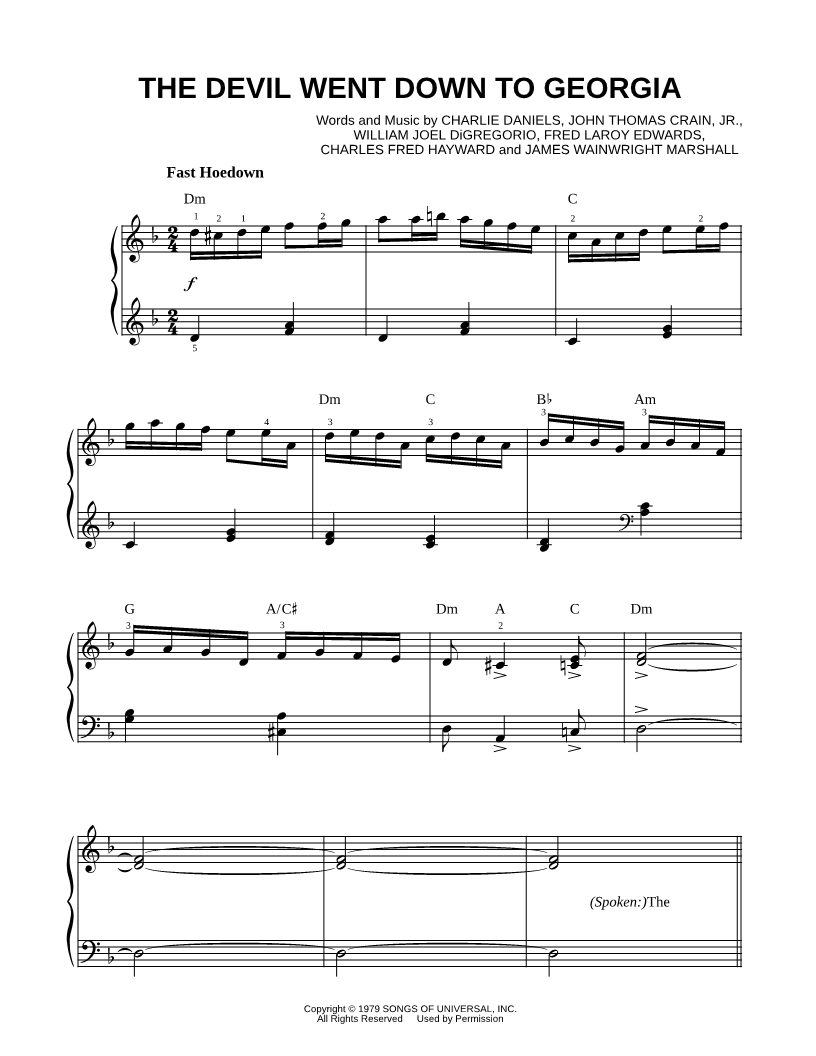 The devil went down to Georgia. He was lookin' for a soul to steal. |