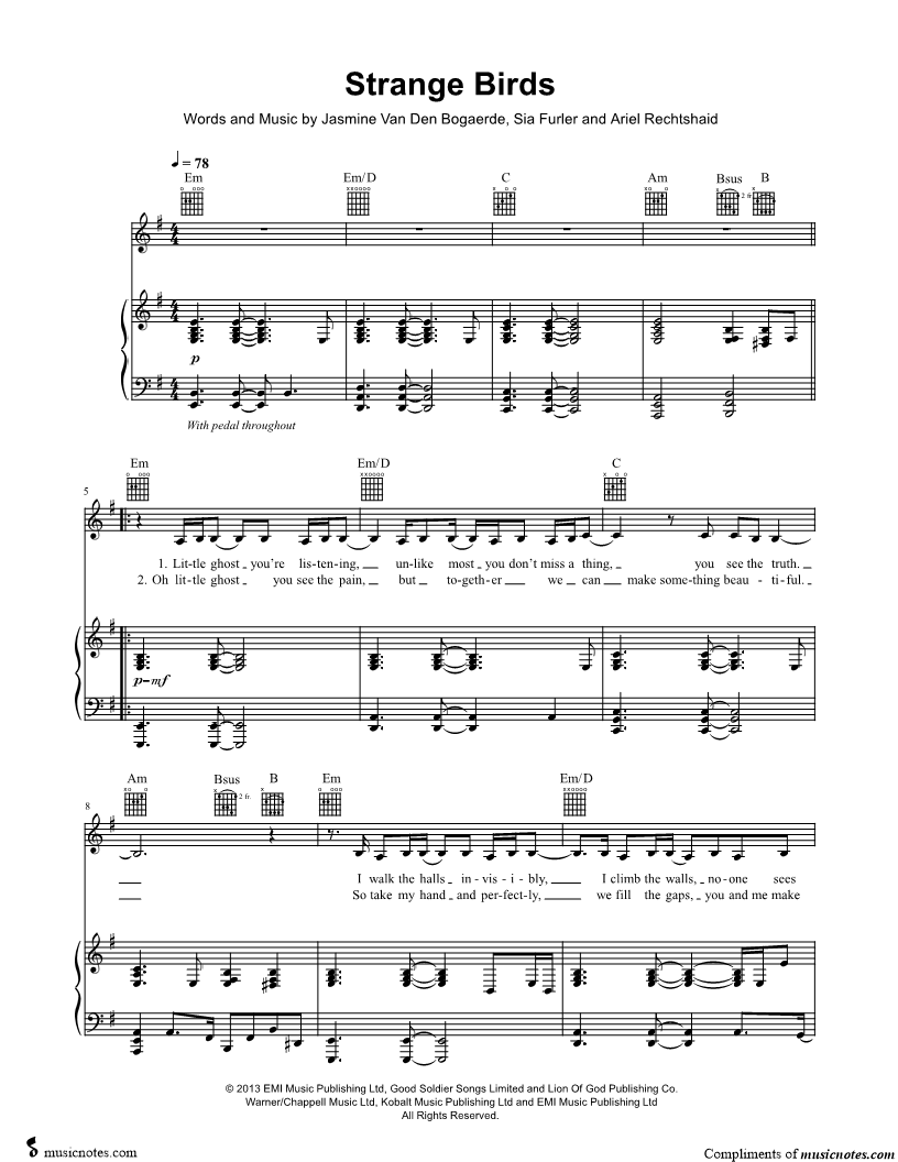 Musicnotes sells a wide variety of digital sheet music products including Singer Pros, Beginner Notes, Choral music, Piano Solos, Lead Sheets, Piano/Vocal/Guitar, Solo and Accompaniment, and fretted instrument tablature.