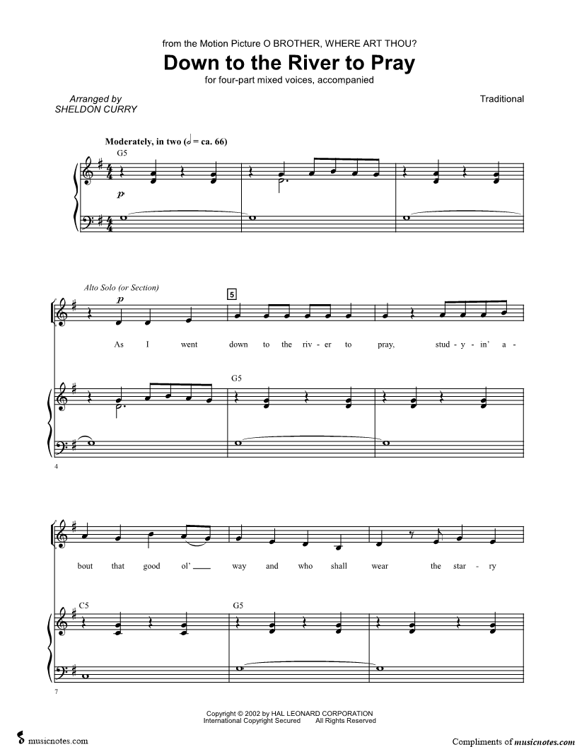 As I went down to the river to pray, studyin' about that good ol' way and who shall wear the starry crown. |