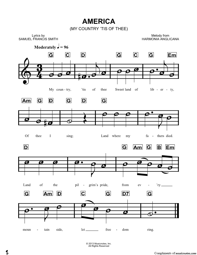 My country, 'tis of thee Sweet land of liberty, |