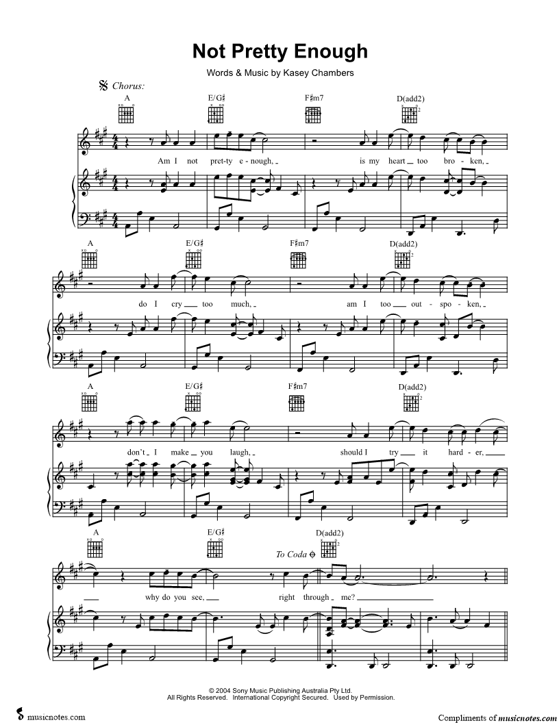 Am I not pretty enough, is my heart too broken, do I cry too much, am I too outspoken, don't I make you laugh, should I try it harder, why do you see, right through me? I live, |