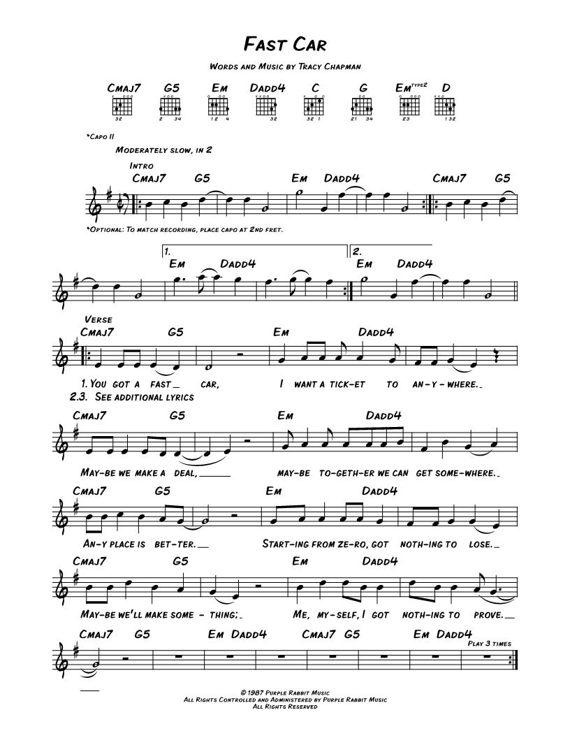 Leadsheets typically only contain the lyrics, chord symbols and melody line of a song and are rarely more than one page in length. Musicians will often use these skeletons to improvise their own arrangements. Leadsheets often do not contain complete lyrics to the song.