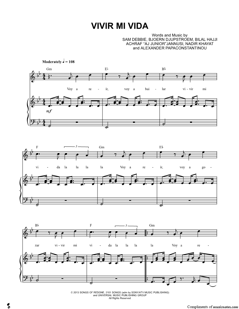 Voy a reír, voy a bailar vivir mi vida lalalalá voy a reír, voy a gozar vivir mi vida lalalalá voy a reír (eeso!), voy a bailar Vivir mi vida lalalalá Voy a reír, voy a gozar vivir mi vida lalalalá |