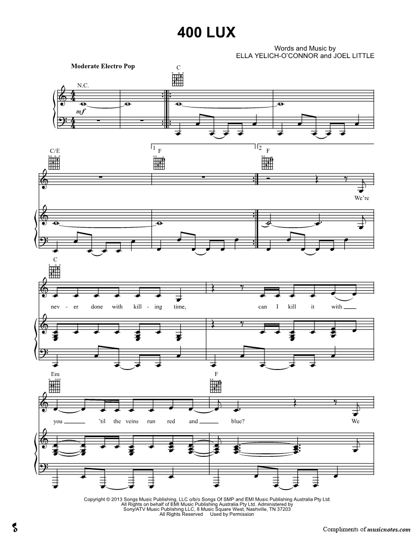 Musicnotes sells a wide variety of digital sheet music products including Singer Pros, Beginner Notes, Choral music, Piano Solos, Lead Sheets, Piano/Vocal/Guitar, Solo and Accompaniment, and fretted instrument tablature.