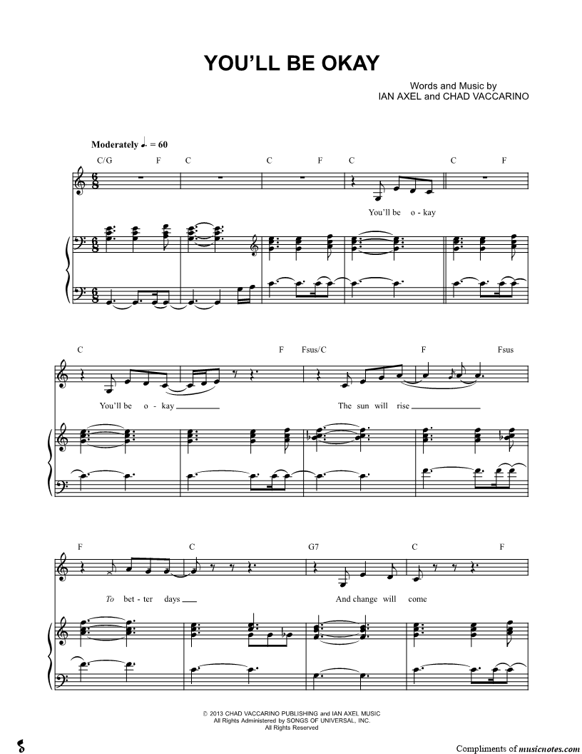 Many of the arrangements on Musicnotes have transpositions available, typically in C Major, as well as 3 sharps and 3 flats. If you do not see your desired key, you can request a transposition by reaching out to Customer Support.