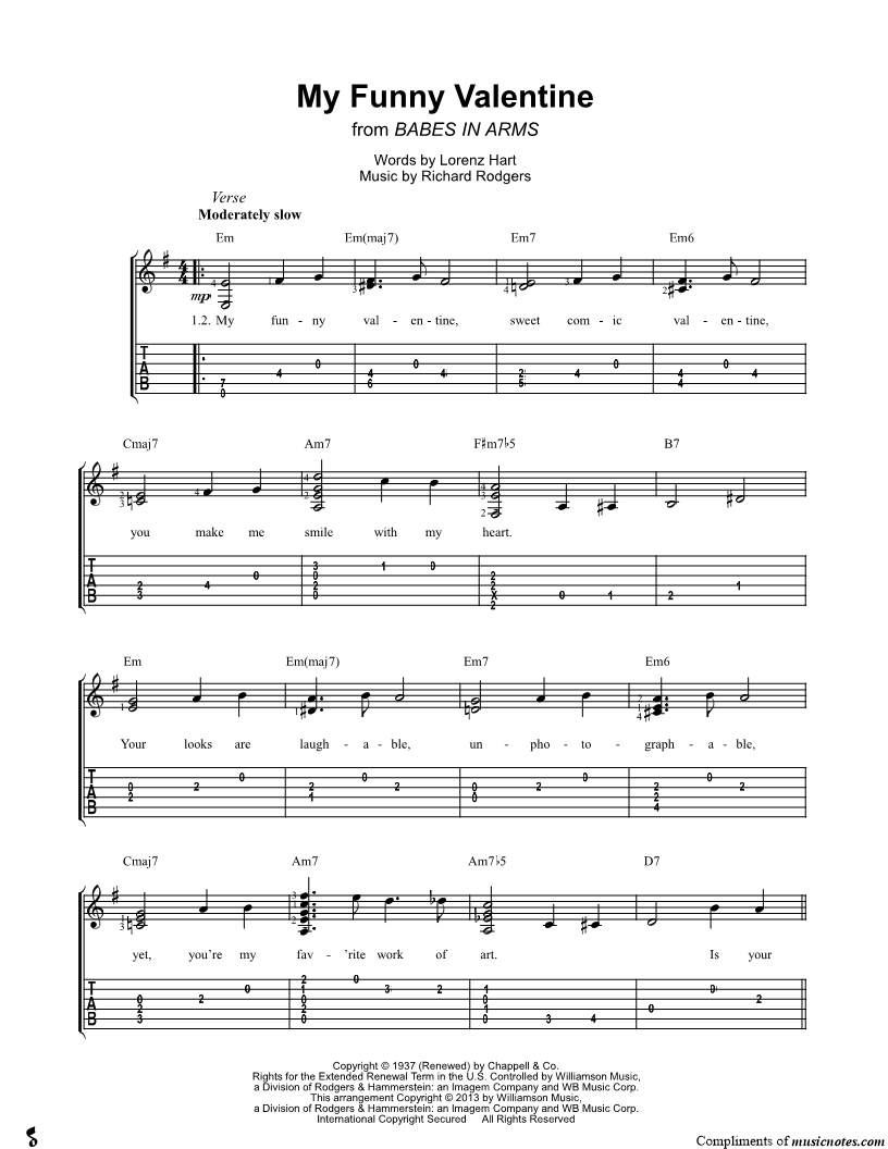 My funny valentine, sweet comic valentine, you make me smile with my heart. |