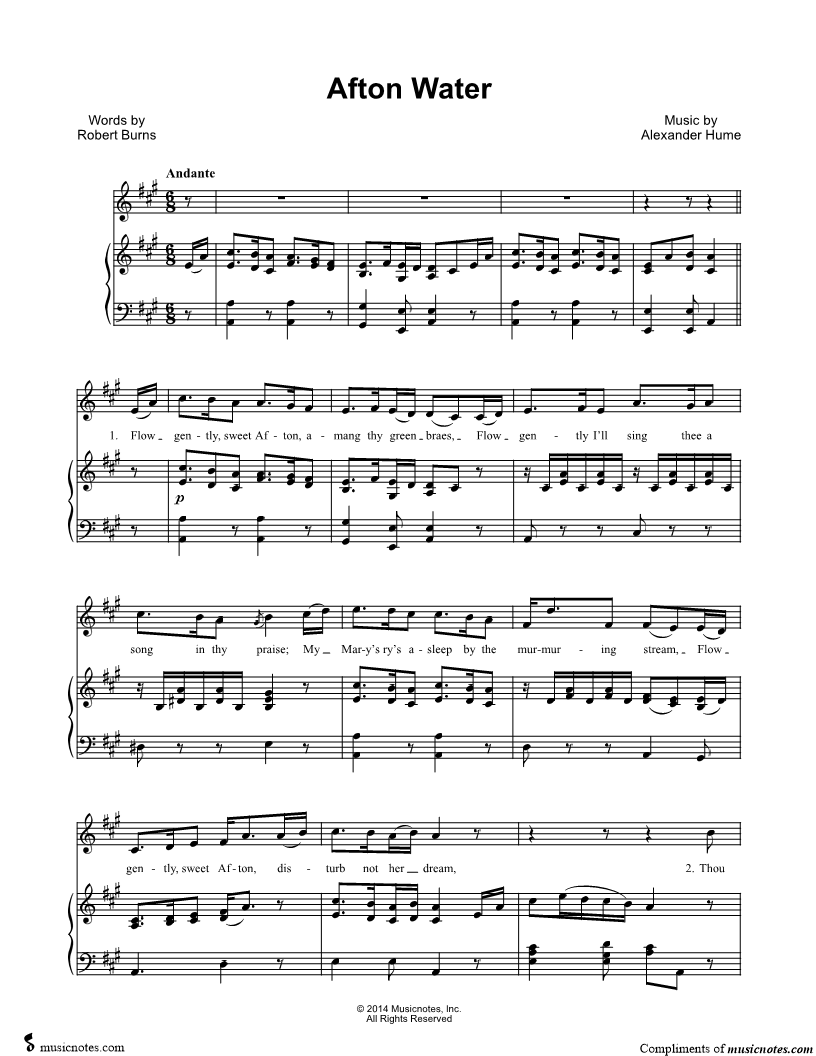 Flow gently, sweet Afton, amang thy green braes, |