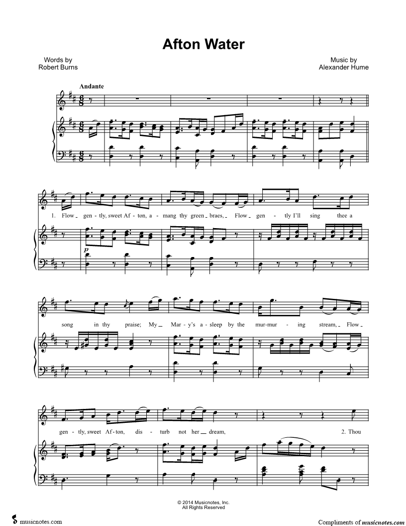 Flow gently, sweet Afton, amang thy green braes, |