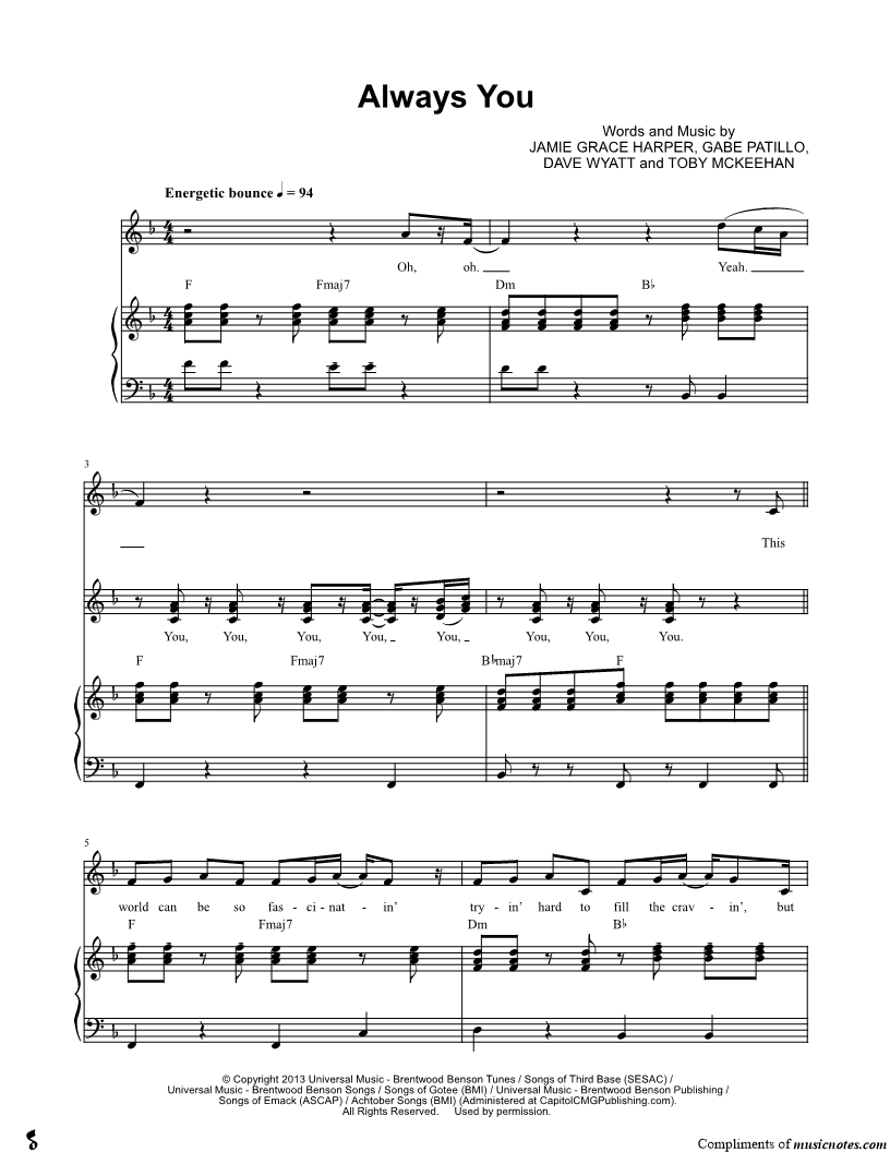 Voice, range: C4-F5 Piano 3-Part Choir or Backup Vocals | |