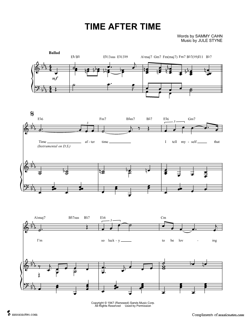 Time after time I tell myself that I'm so lucky to be loving you, so lucky to be the one you run to see in the ev'ning when the day is through. |