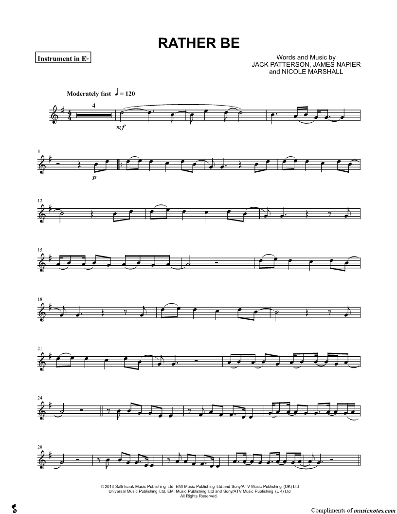 Rather Be - Eb Instrument |
