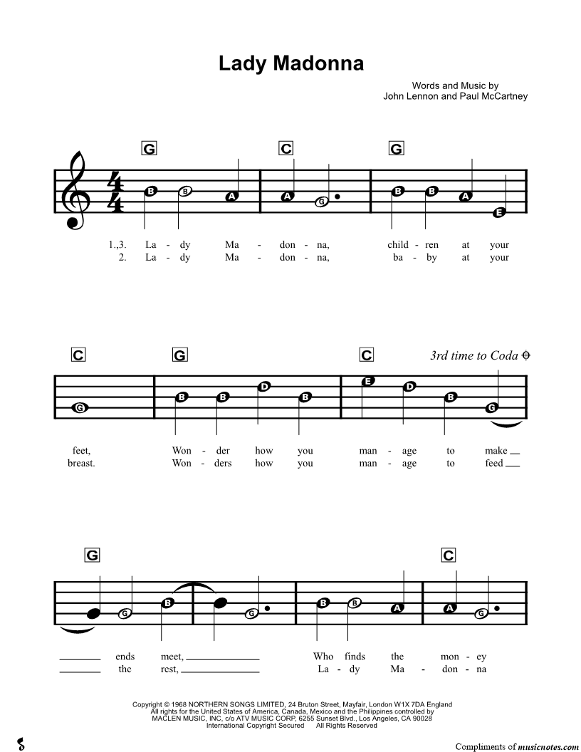 Lady Madonna, children at your feet, |