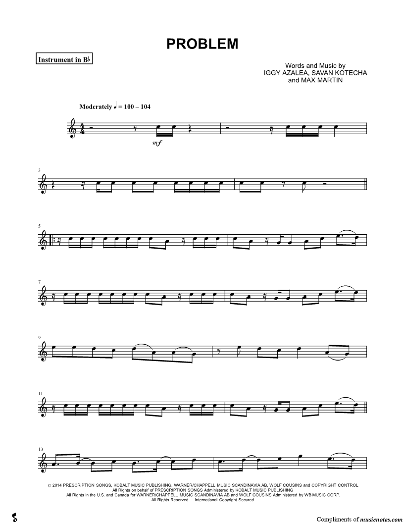 Bb Instrument, range: D4-A5 (Trumpet, Soprano Saxophone, Tenor Saxophone or Clarinet) | |