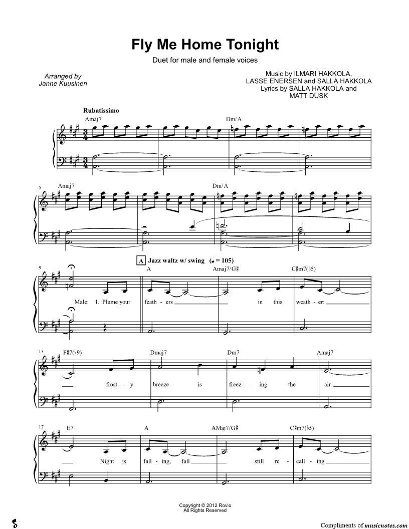 Voice 1, range: A3-F#5 or Male Voice Voice 2 or Female Voice Piano | |