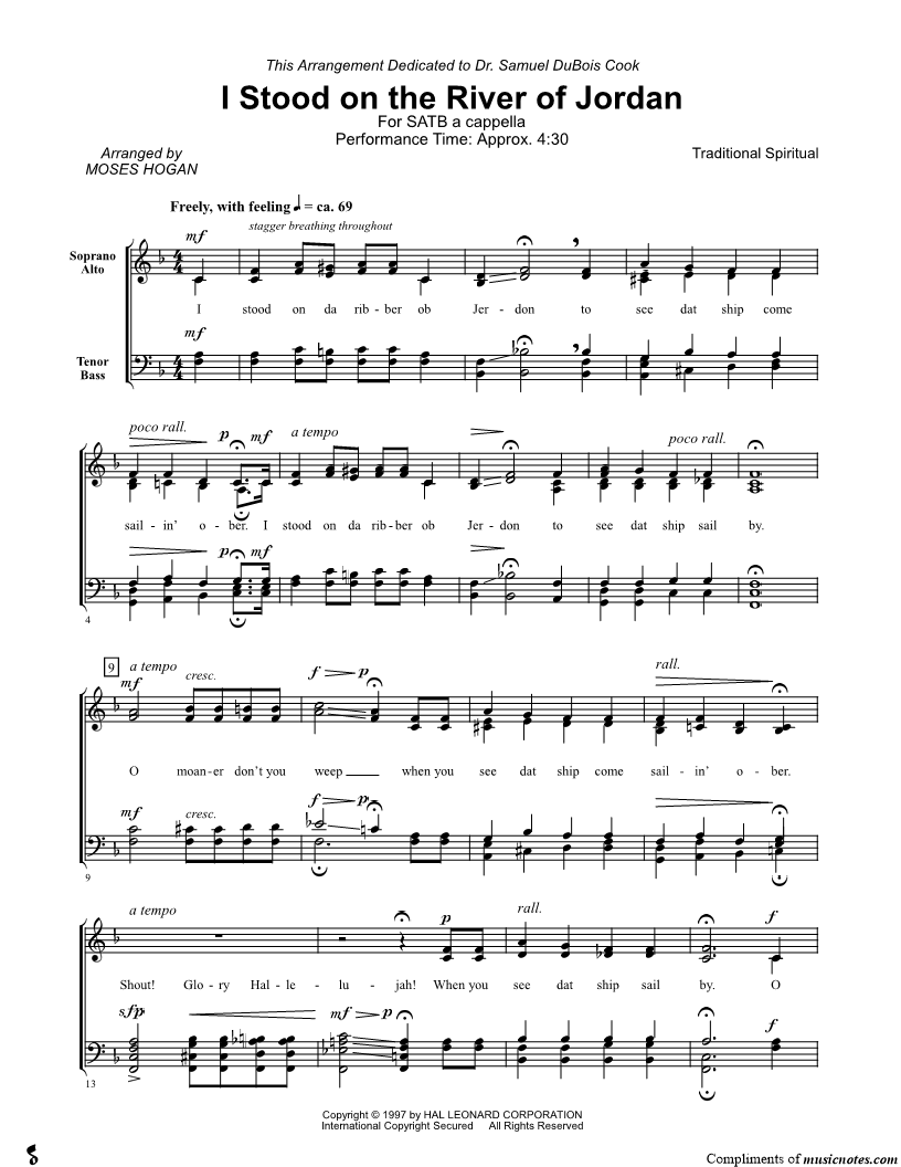 I stood on da ribber ob Jerdon to see dat ship come sailin' ber. |