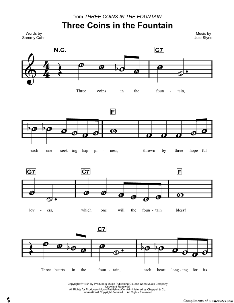 Three coins in the fountain, each one seeking happiness, thrown by three hopeful lovers, which one will the fountain bless? |