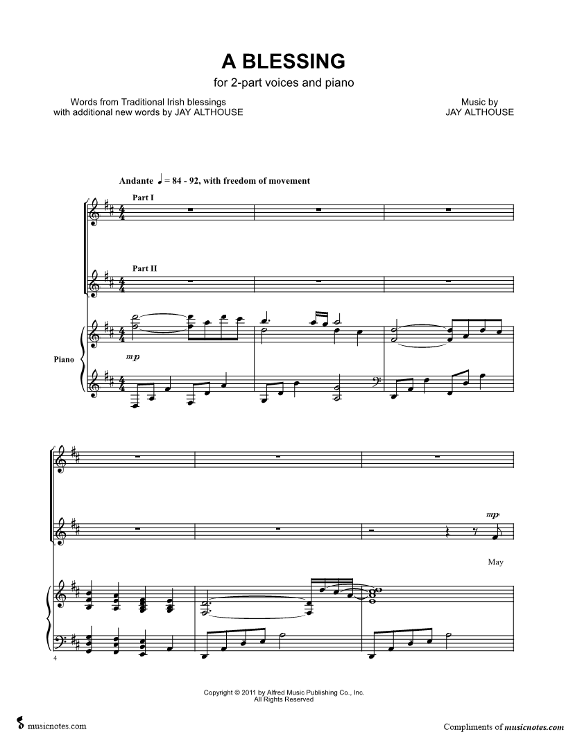 "This Althouse arrangement is a lovely work for younger treble voices."