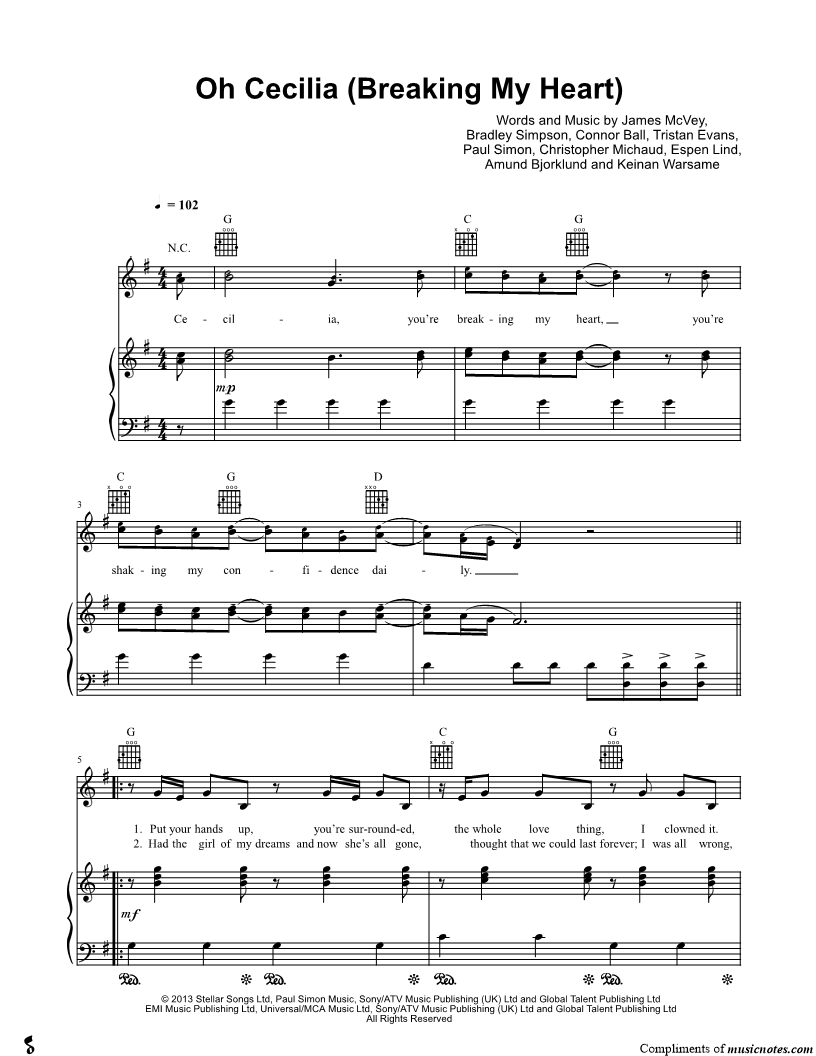 Cecilia, you're breaking my heart, you're shaking my confidence daily. |