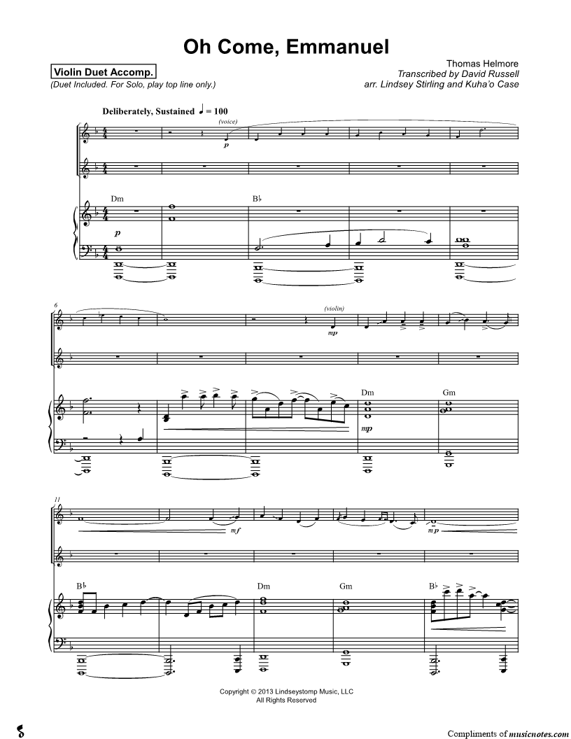 Oh Come, Emmanuel - Violin Duet & Piano |