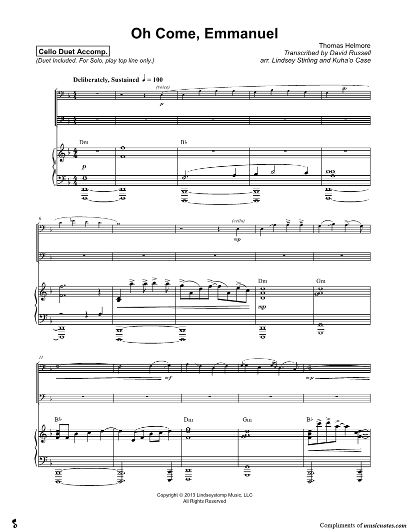 Oh Come, Emmanuel - Cello Duet & Piano |