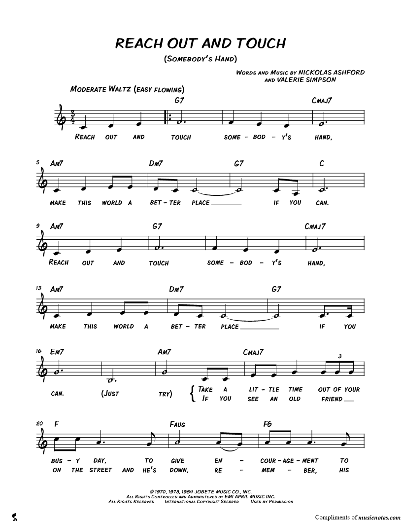Reach out and touch some body's hand, make this world a better place if you can. |