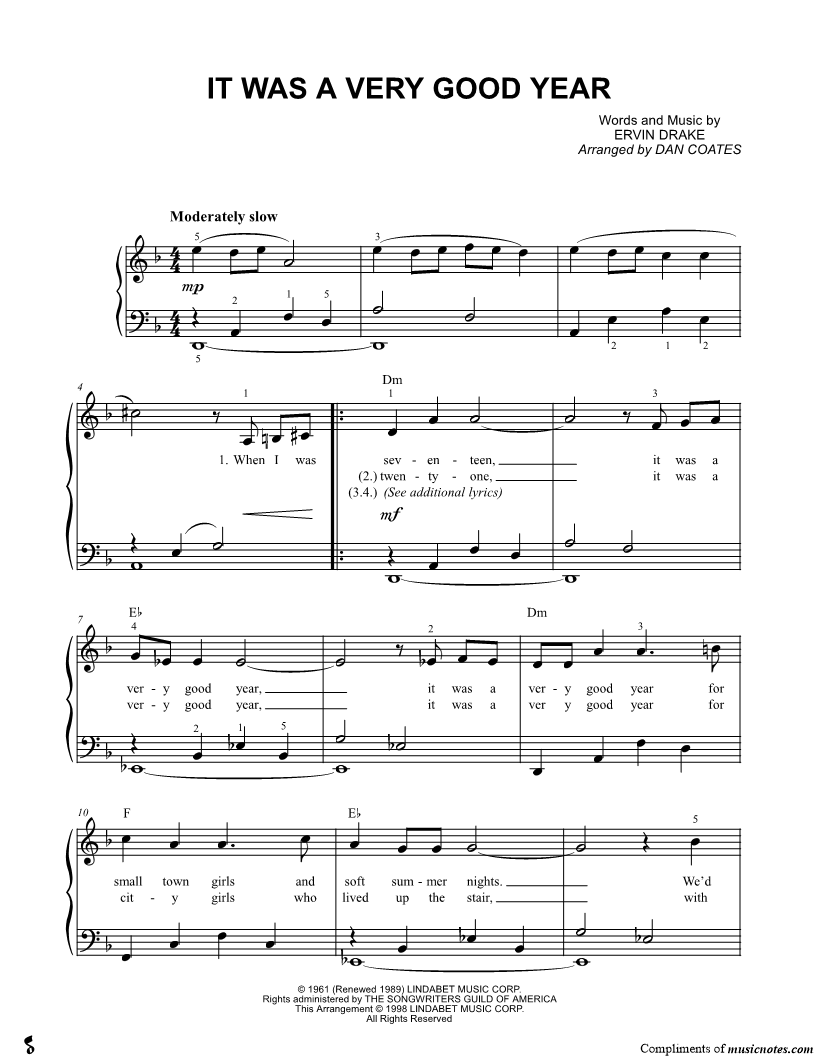When I was seventeen, it was a very good year, it was a very good year for small town girls and soft summer nights |