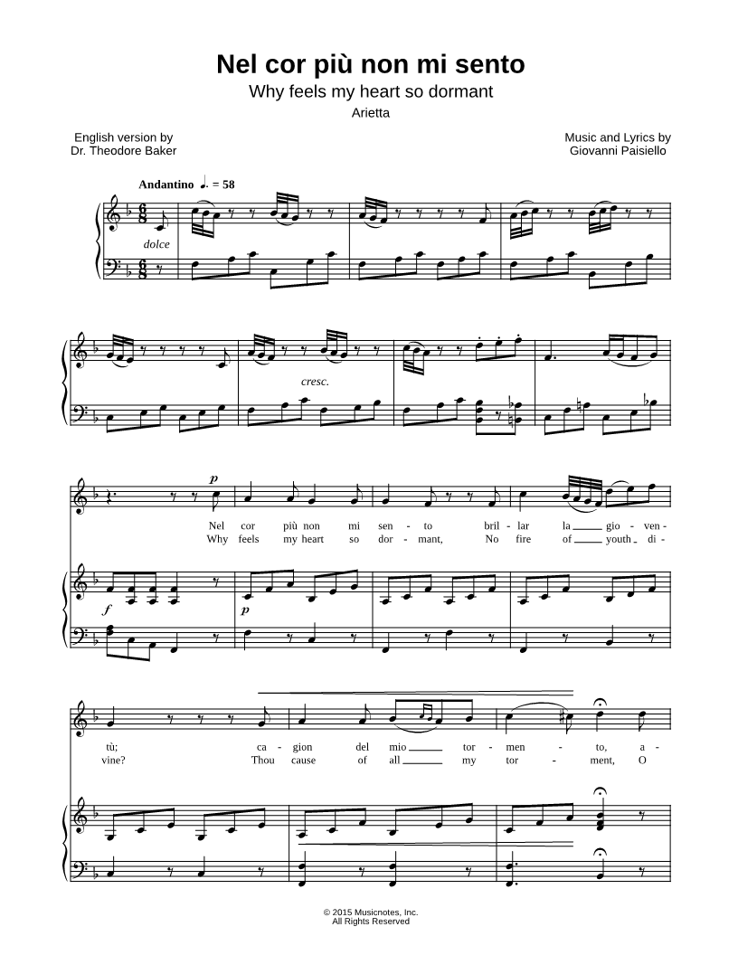 Nel cor più non mi sento brillar la gioventù; cagion del mio tormento, amor, sei colpa tu. |
