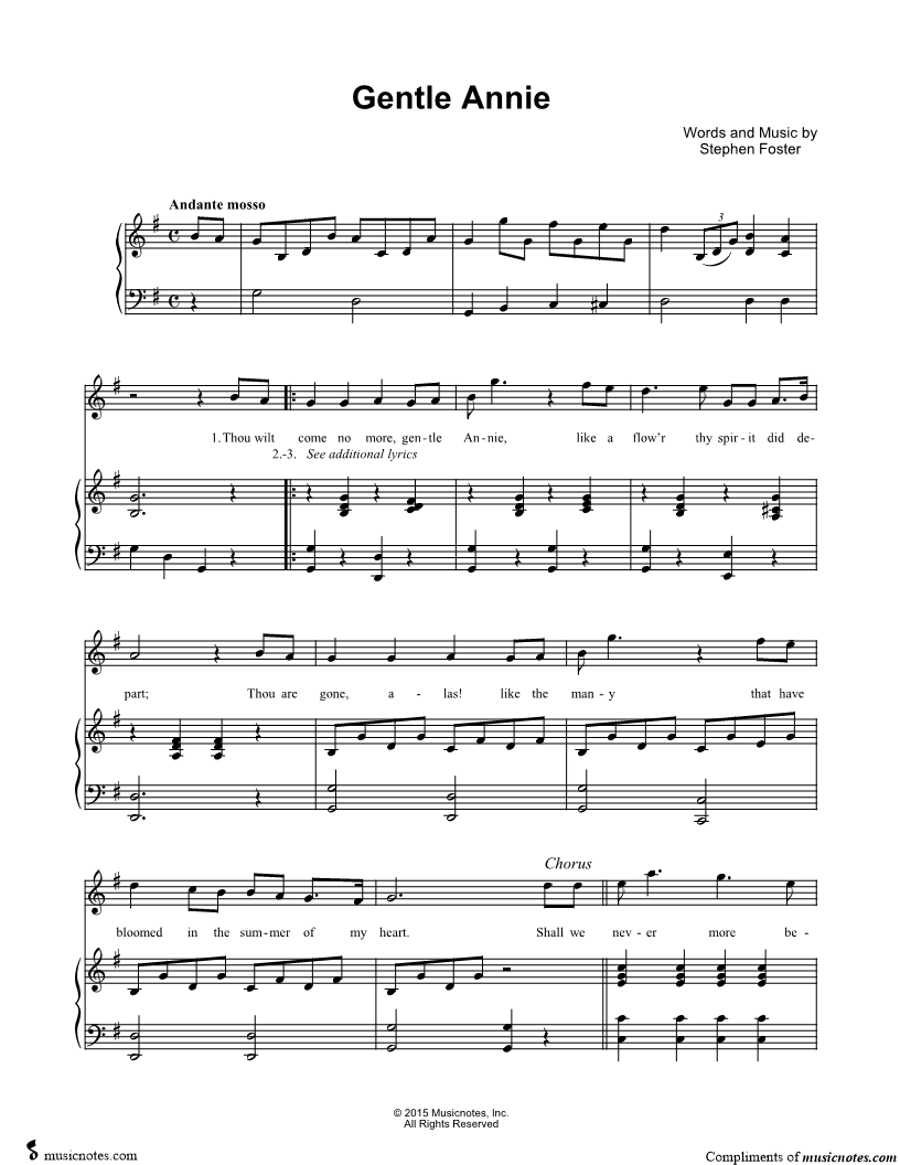 Thou wilt come no more, gentle Annie, like a flow'r thy spirit did depart; |