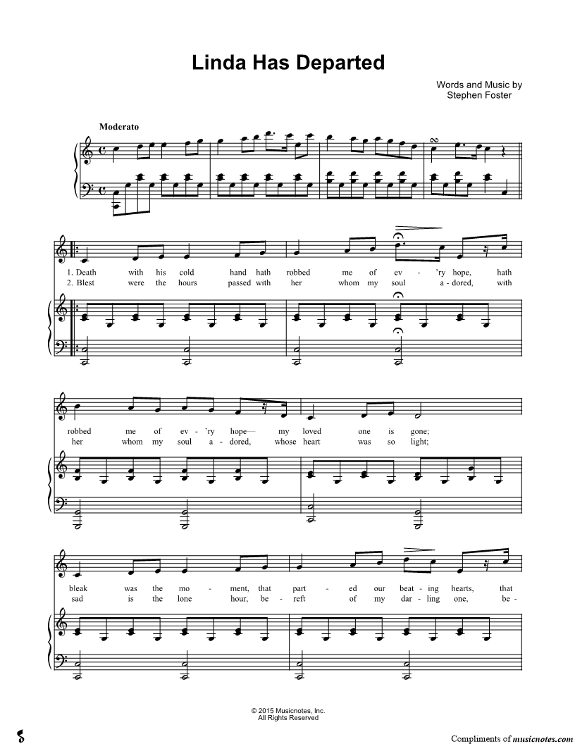 Death with his cold hand hath robbed me of ev'ry hope, hath robbed me of ev'ry hope my loved one is gone; bleak was the moment, that parted our beating hearts, that parted our beating hearts and left me alone. |