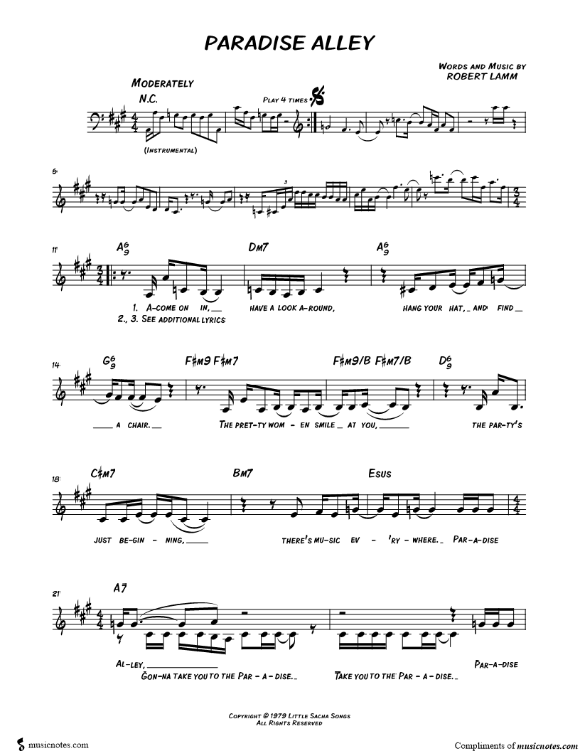 Leadsheets typically only contain the lyrics, chord symbols and melody line of a song and are rarely more than one page in length. Musicians will often use these skeletons to improvise their own arrangements. Leadsheets often do not contain complete lyrics to the song.