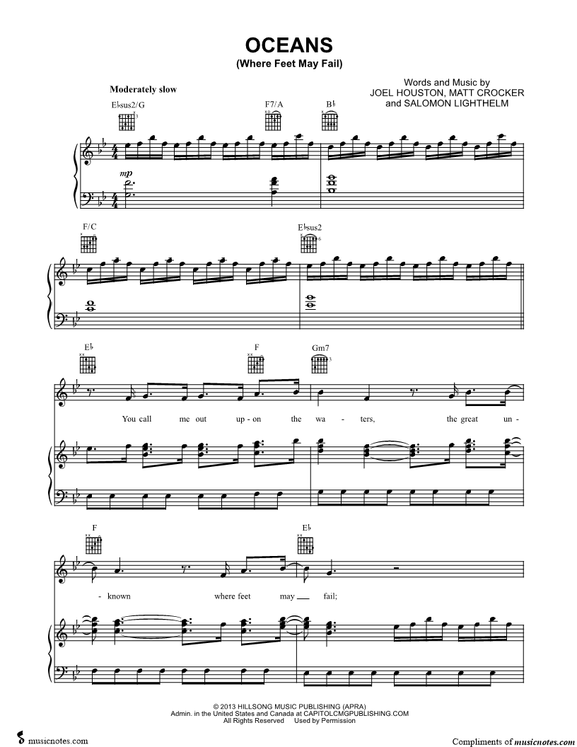 "This is an excellent Musicnotes Sheet Arrangement of "Oceans (Where Feet May Fail)&qu..." Read reviews