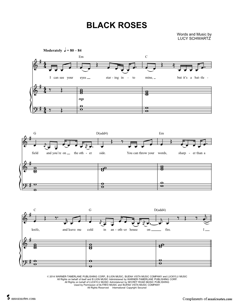 Musicnotes sells a wide variety of digital sheet music products including Singer Pros, Beginner Notes, Choral music, Piano Solos, Lead Sheets, Piano/Vocal/Guitar, Solo and Accompaniment, and fretted instrument tablature.