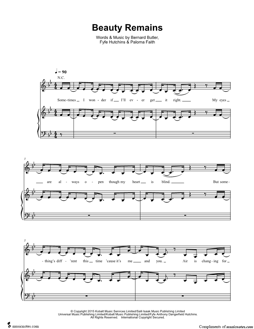 Musicnotes sells a wide variety of digital sheet music products including Singer Pros, Beginner Notes, Choral music, Piano Solos, Lead Sheets, Piano/Vocal/Guitar, Solo and Accompaniment, and fretted instrument tablature.