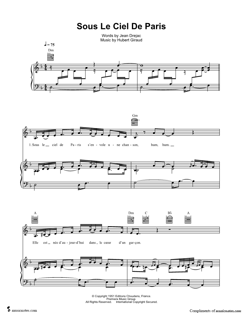 Sous le ciel de Paris s'envole une chanson, hum, hum. |
